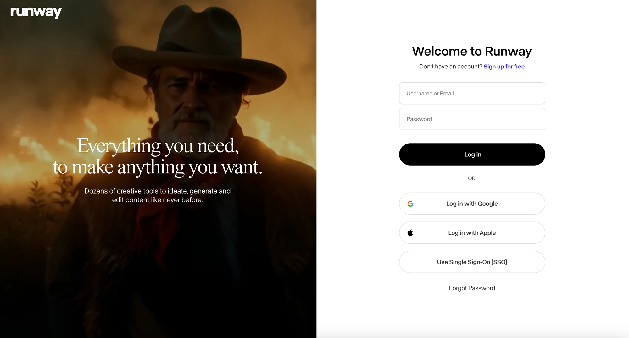 Step 1: Click to open Runway and click the "Get Started" button in the top right corner.