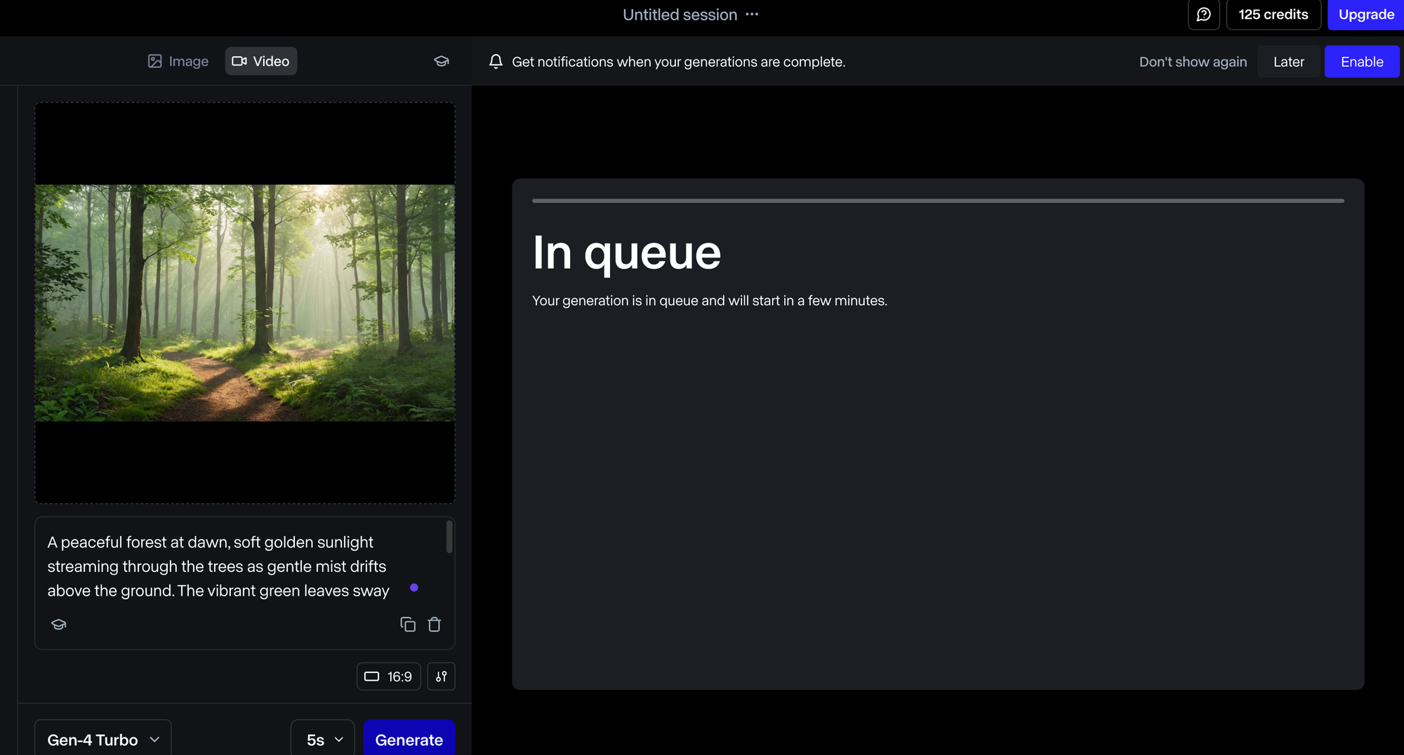Click the button to generate the video. Each use costs 25 credits, allowing you to generate 5 videos with the free 125 credits.